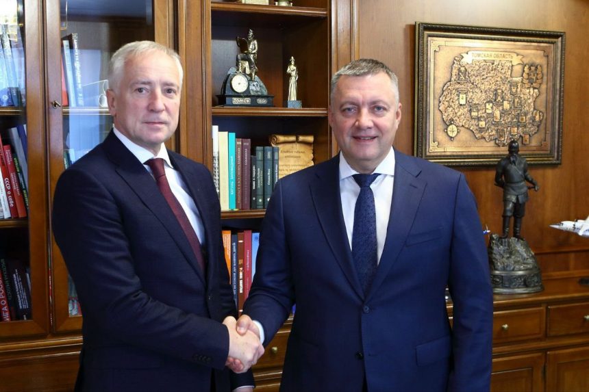 Губернатор Иркутской области в Томске встретился с главой Томской области Владимиром Мазуром. Стороны обсудили перспективные направления в совместной работе и планируют подписать соглашение о сотрудничестве на предстоящей Международной выставке-форуме «Россия».