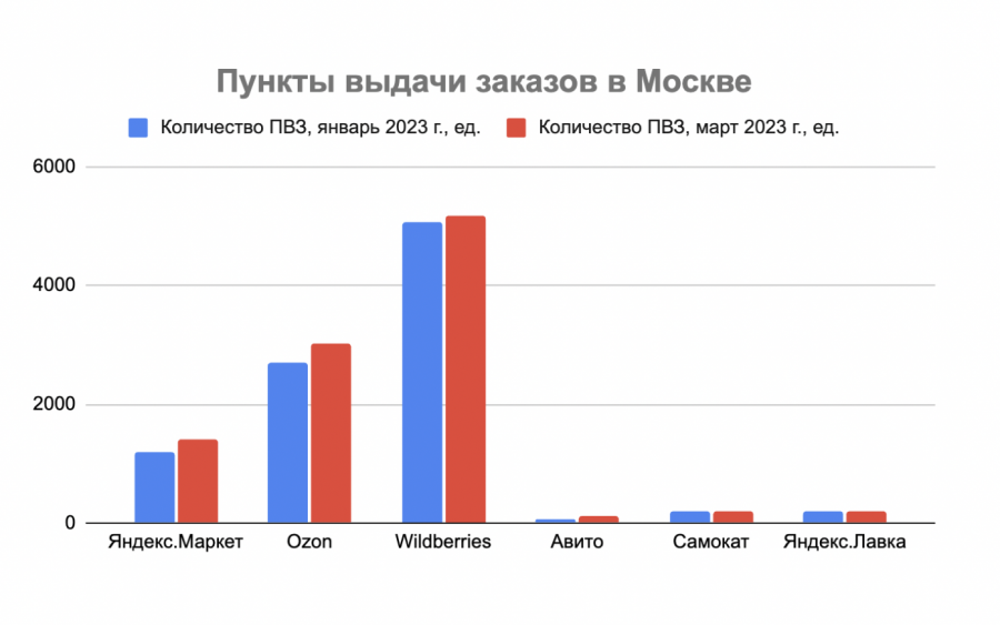 В марте 2023 года в Москве и ближайшем Подмосковье работает 16085 пунктов выдачи товаров. С января текущего года количество ПВЗ сократилось на 1,95% или на 319 точек. Однако количество точек так называемой большой тройки только растёт.