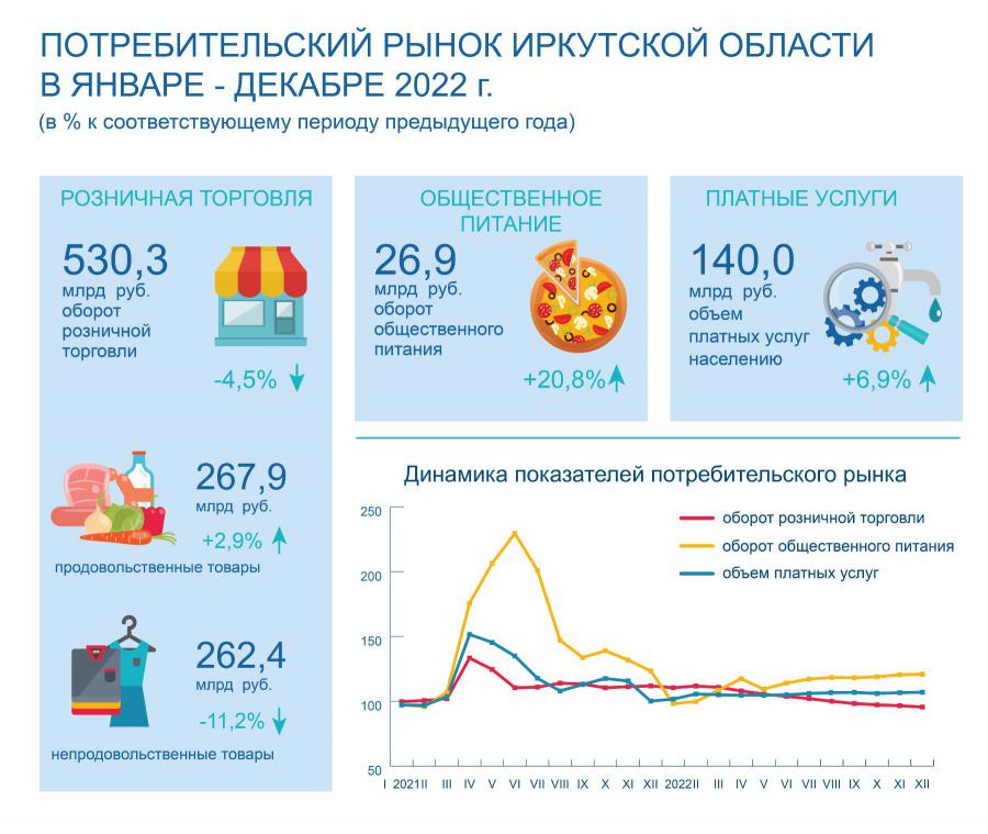 Оборот розничной торговли сократился на 4,5% в Иркутской области в 2022 году