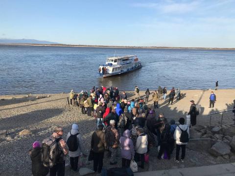 В субботу, 29 апреля, в Хабаровске открылся сезон речной пассажирской навигации. Это произошло на два дня раньше обычных сроков. По поручению губернатора Хабарвоского края Михаила Дегтярёва первый теплоход доставил на приусадебные участки около 300 человек.