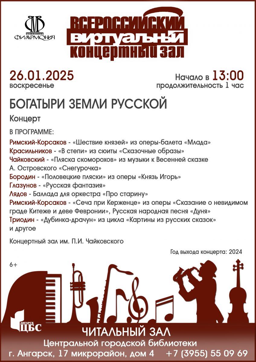 Концерт «Богатыри земли русской» Известный артист, режиссер и педагог Павел Любимцев познакомит юную аудиторию с сокровищами русской культуры – былинами о «богатырях земли русской».