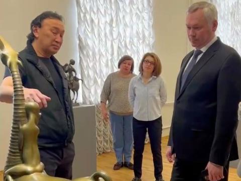 Губернатор Новосибирской области Андрей Травников познакомился со скульптором, художником и ювелиром Даши Намдаковым.