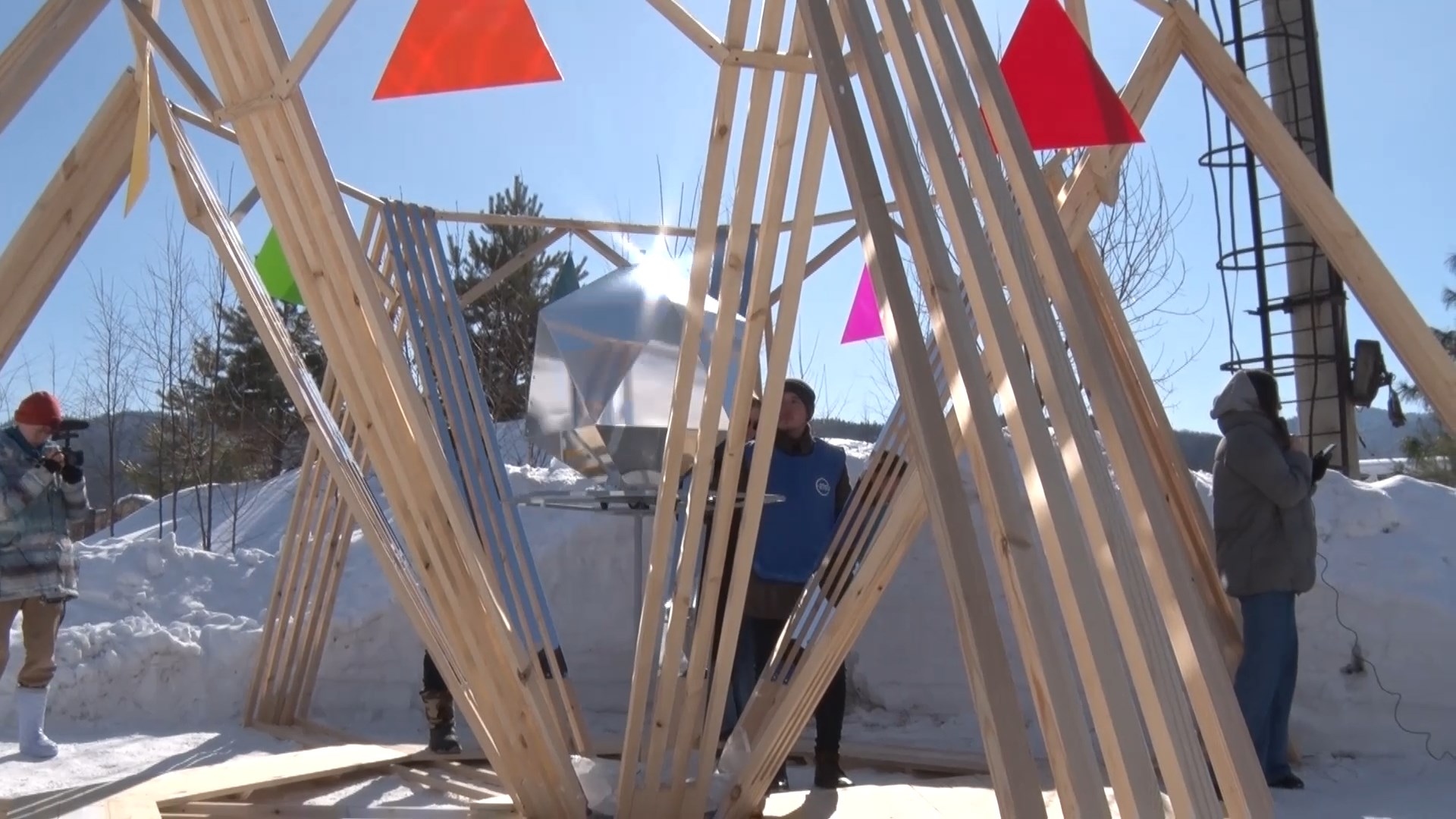 — У нас называется объект «Осколок Байкала». Каркас сделан из металлокаркаса. И должно было быть ещё оргстекло, но материал не приехал, его не будет. Будем импровизировать.