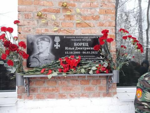 В Омске на здании аграрно-технологического колледжа установили мемориальную доску погибшему на спецоперации выпускнику учреждения - матросу военной службы Илье Борцу. Военнослужащий за воинский подвиг посмертно представлен к ордену Мужества.