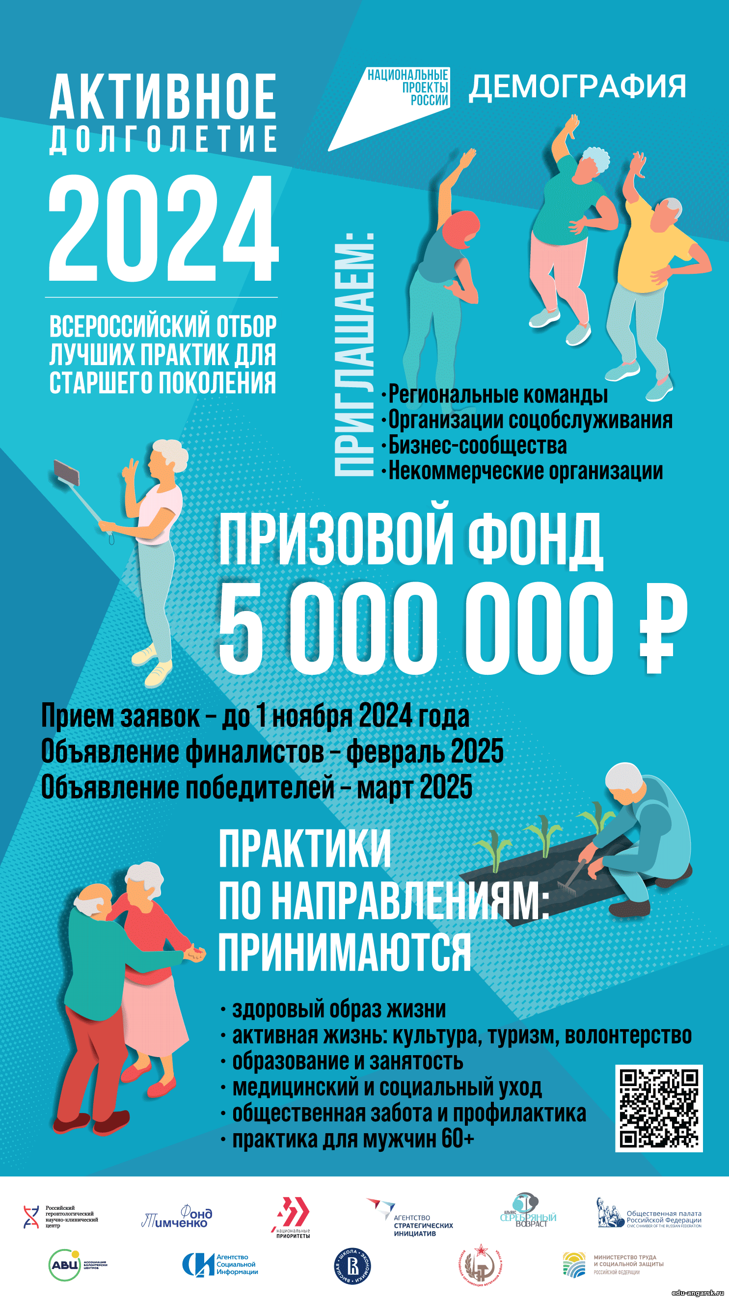 Приглашаем к участию в пятом Всероссийском отборе лучших практик для старшего поколения «Активное долголетие 2024»!