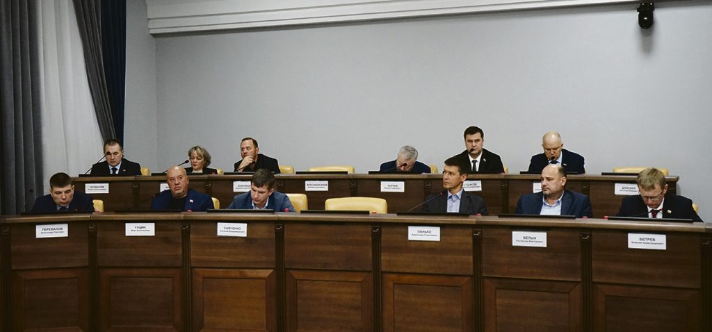 Председатель Евгений Стекачев (избирательный округ № 28) Алексей Колмаков (избирательный округ № 30) Сергей Юдин (избирательный округ № 19) Светлана Кузнецова (избирательный округ № 1) Дмитрий Ващук (избирательный округ № 3) Евгений Савченко (избирательный округ № 4) Дмитрий Красноштанов (избирательный округ № 6) Леонид Усов (избирательный округ № 5) Антонина Корочкина (избирательный округ № 23) Алексей Грешилов (избирательный округ № 16) Василий Донских (избирательный округ № 26) Иван Гущин (избирательный округ № 27) Михаил Корнев (избирательный округ № 34) Александр Квасов (избирательный округ № 15) Григорий Вакуленко (избирательный округ № 24 Руководитель группы Алексей Савельев (избирательный округ № 7)Заместители руководителя: