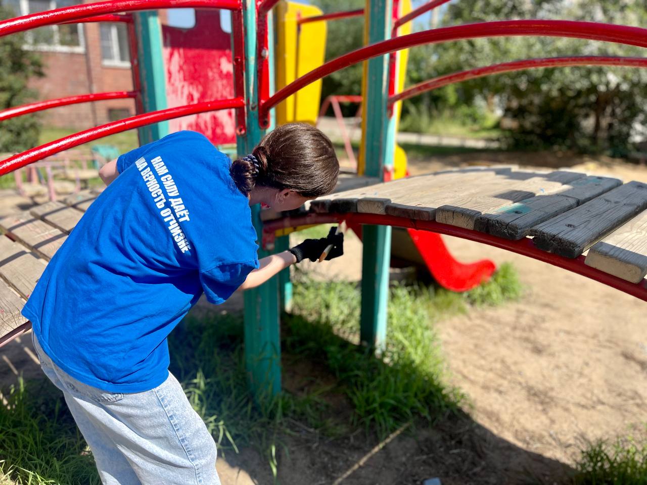 Иркутские молодогвардейцы продолжают облагораживать детские спортплощадки