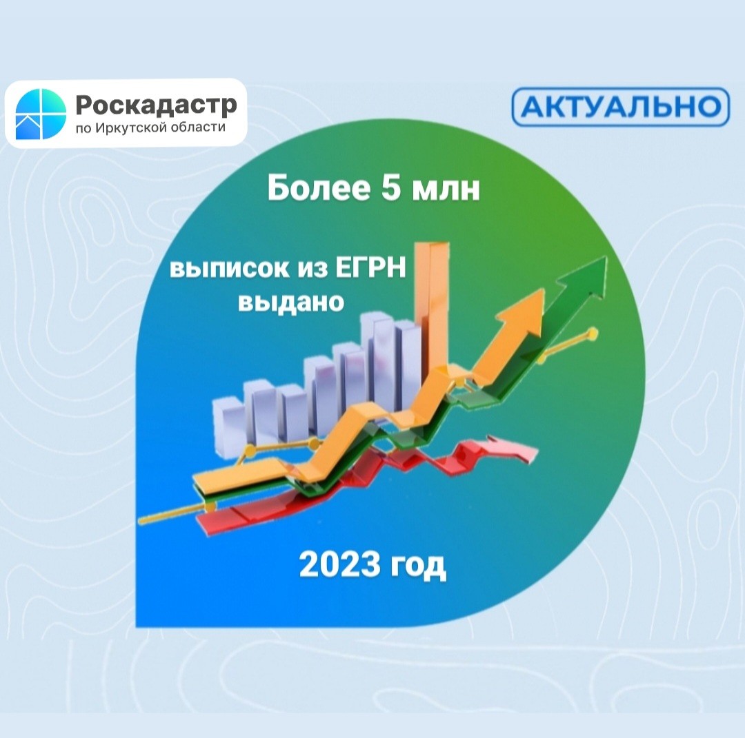 По итогам работы за 2023 год филиалом ППК «Роскадастр» по Иркутской области предоставлено свыше 5 млн. выписок физическим, юридическим лицам, а также органам власти. Более 97% выписок запрошено в электронном виде.