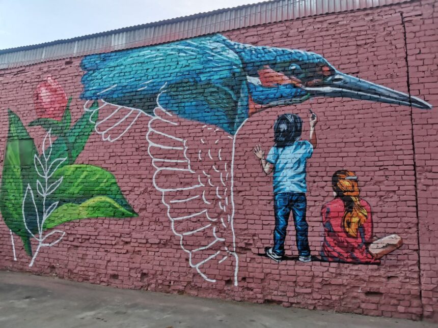 В Иркутске на здании во дворе Дома ветеранов на улице Богдана Хмельницкого наносят художественную роспись. Фасад оформляют в рамках благоустройства дворовой территории. Еще в прошлом году комитет по управлению Правобережным округом Иркутска собрал художников, которые создали эскизы. Выбор сделали жители, проголосовав за вариант художников Сергея Пнева и Михаила Бородачева. Помогают в оформлении стен спонсоры, рассказали в пресс-службе мэрии Иркутска.