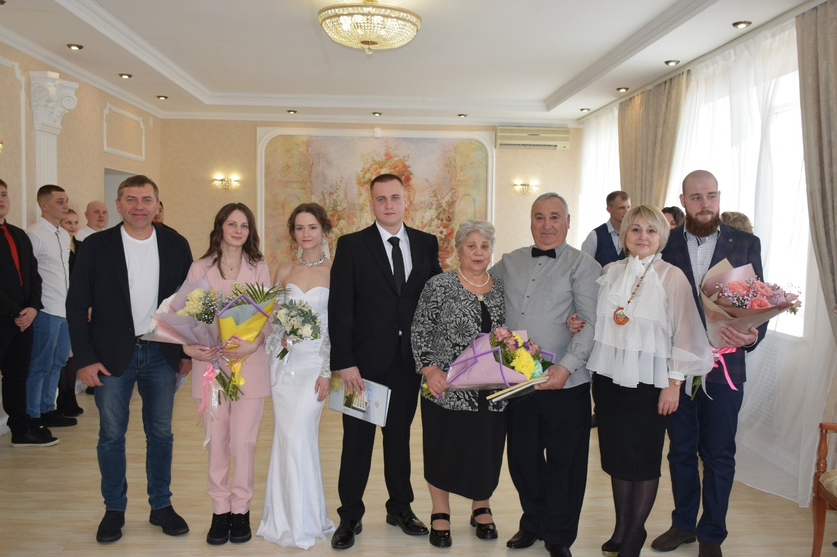 22 февраля семья Хорошиловых отметила два значимых события: молодая пара Станислава и Татьяны обменялись кольцами и произнесли клятву верности друг другу, а бабушка с дедушкой – Владимир Васильевич и Валентина Витальевна отметили одну из главных дат супружества золотую свадьбу.
