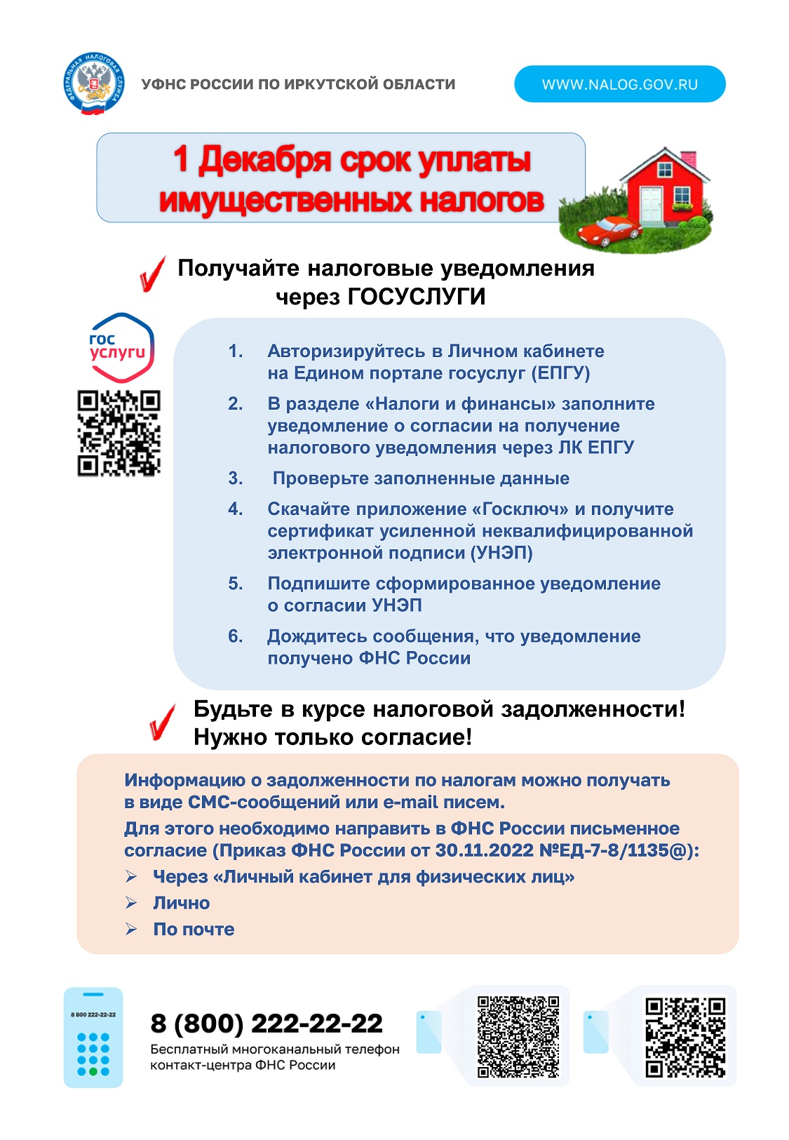 Получайте налоговые уведомления и до 1 декабря уплачивайте имущественные налоги ФЛ на портале Госуслуг (ЕПГУ) .