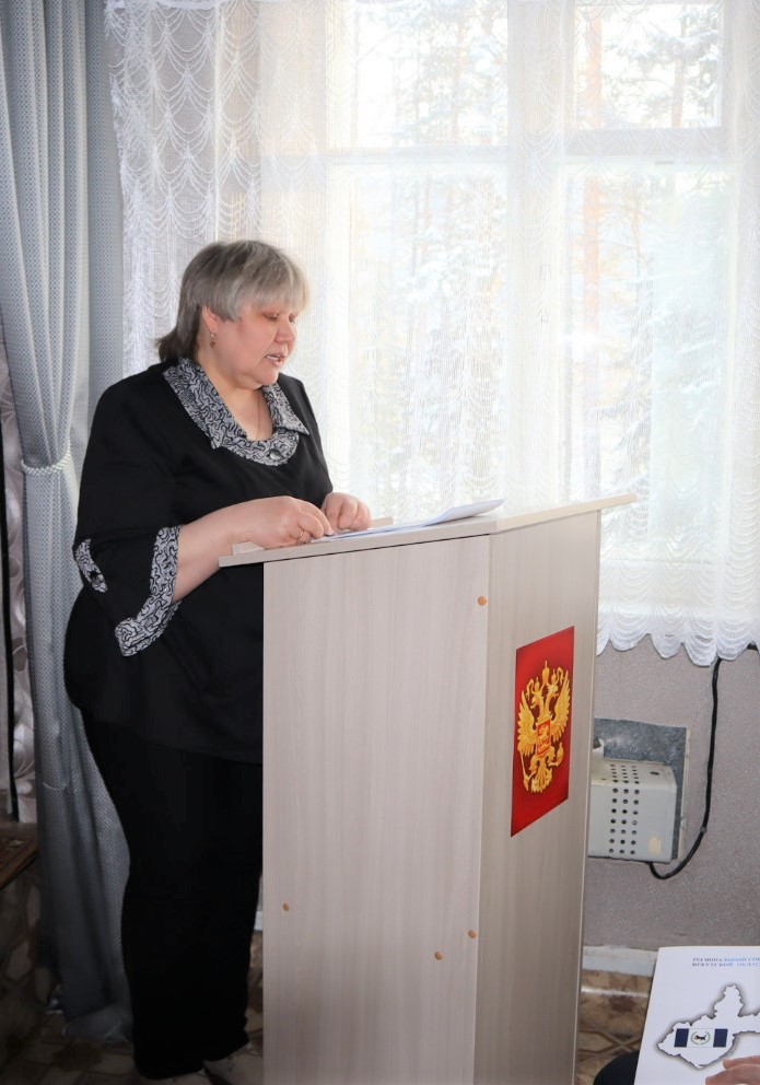 Перед собравшимися также с информацией выступили: начальник ОМВД России по Нижнеилимскому району Александр Кузнецов, заместитель директора ОГКУ «Управление социальной защиты населения Елена Полезнюк, и.о.заместителя главного врача по амбулаторно-поликлинической работе ОГБУЗ «Железногорская районная больница Лилия Миронова, директор ООО «КОМИТ» Оксана Ходырева, главный специалист отдела социально-экономического развития Балахнина Светлана.