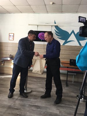 Алексей Колпаков, обращаясь к председателю общества инвалидов Александру Автушенко, поблагодарил его за проделанную работу, организацию деятельности общества и вручил подарок, выразив надежду, что он будет востребован в обществе инвалидов. Тем более после того, как местная организация инвалидов выиграла гранд, на средства которого были приобретены швейные машинки, которые на сегодняшний день полностью задействованы. Мастерицы шьют фартуки, прихватки, сумки, изготавливают кукол.