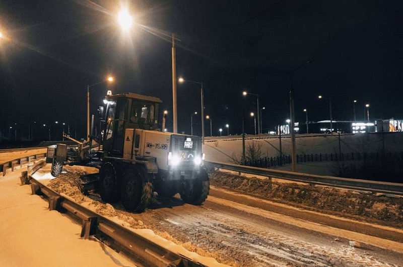Почти 70 единиц специализированной техники вышли на линию ночью , когда дороги свободны. Также выполняли механизированную уборку тротуаров. Ночью снег вывозили с Академического моста, в районе аэропорта, улиц Ленина, Тимирязева, Красногвардейская, Освобождения, Сухэ-Батора и других. За сутки убрано 1600 тонн.
