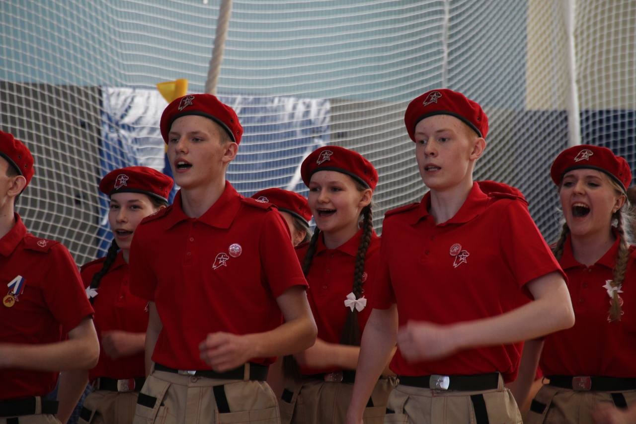 Юнармейцам предстояло продемонстрировать членам жюри навыки строевой подготовки в команде, по одному, работу командира и исполнение строевой песни.