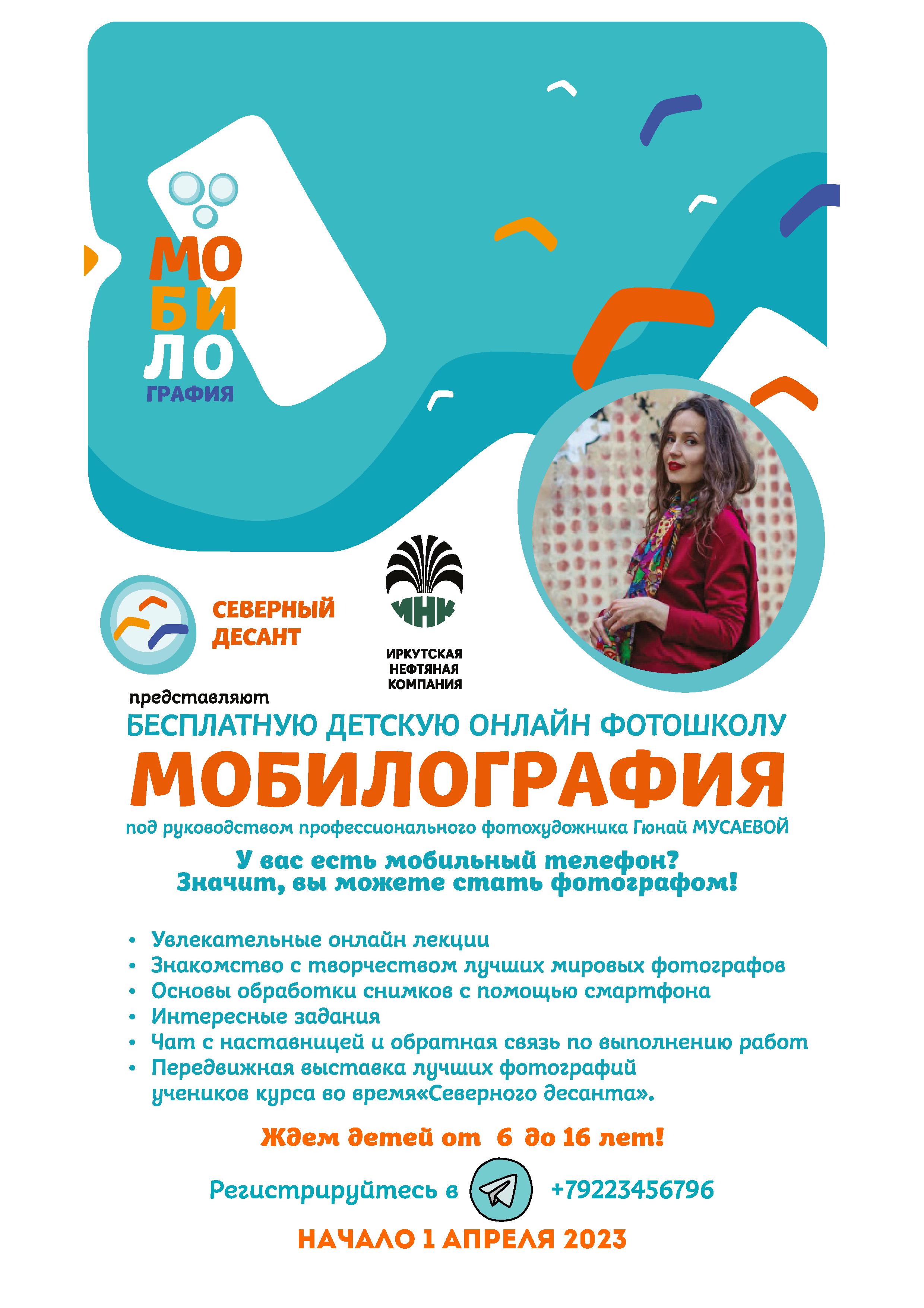 Приглашаем ребят в возрасте от 6 до 16 лет в бесплатную детскую онлайн-фотошколу "Мобилография" под руководством профессионального фотохудожника Гюнай Мусаевой.