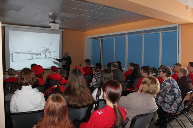 На встречу с иркутским журналистом, исследователем авиатрассы Аляска — Сибирь и автором историко-краеведческих книг Михаилом Денискиным пришли не только местные краеведы и участники районного движения поисковиков "Небо АЛСИБа", но и приехал целый отряд юнармейцев из поселка Рудногорск.
