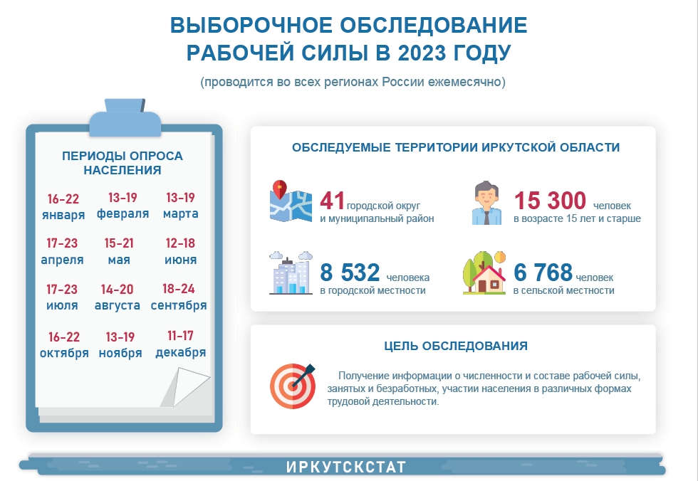 Результаты обследования помогут получить информацию о текущей ситуации с наличием работы в регионе, о численности и составе рабочей силы, занятых и безработных, об участии населения в различных формах трудовой деятельности.