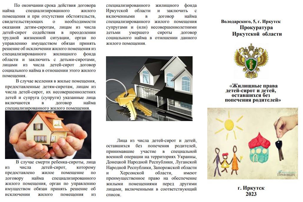 Жилищные права детей-сирот и детей, оставшихся без попечения родителей.Памятки разработаны прокуратурой Иркутской области.