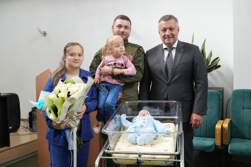 8 сентября, глава региона приехал в Иркутский городской перинатальный центр (ИГПЦ), чтобы лично поздравить с рождением ребёнка семью участника СВО Станислава. Сам молодой человек также смог присутствовать на выписке – командование воинской части отпустило его в двухнедельный отпуск. В торжественной обстановке Станиславу и его супруге Александре вручили свидетельство о рождений сына.
