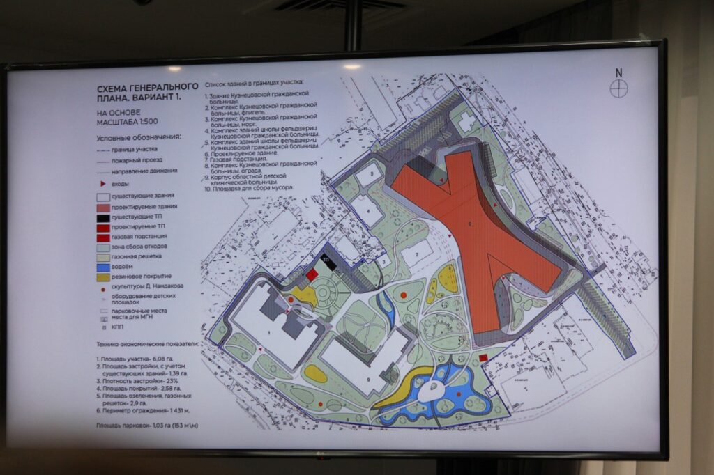 Юрий Козлов презентовал архитектурное решение будущего объекта. Это будет современное семиэтажное здание, куда переместят все отделения больницы, диагностические службы, оперблок, реанимацию, консультативно-диагностический центр. В историческом здании, которое сейчас является главным корпусом больницы, планируют открыть медицинский научный центр и вести научно-практическую деятельность. Ещё один объект культурного наследия, в котором ранее располагался консультативно-диагностический центр детской больницы, после капитального ремонта отдадут под бесплатную гостиницу для семей с тяжелобольными детьми. Соседнее пустующее здание, где в 19 веке располагалось училище для фельдшеров, планируют отремонтировать для проживания медицинских работников. Также предусмотрено обустройство прилегающей территории – проект парка выполнит скульптур Даши Намдаков.