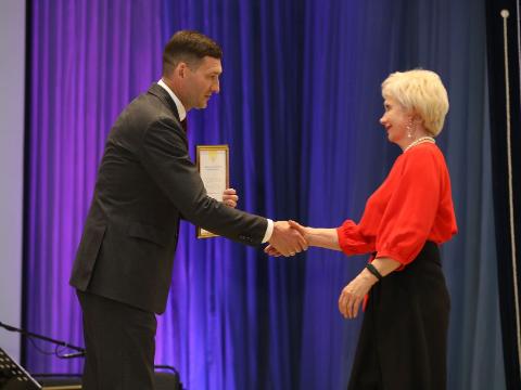 Константин Зайцев вручил нагрудные знаки "Отличник здравоохранения" главному врачу Нижнеудинской районной больницы Манату Раджабову и двум представителям Иркутской Городской Ивано-Матренинской детской клинической больницы – врачу-педиатру приёмного отделения Валентине Соболь, фельдшеру-лаборанту бактериологической лаборатории Вере Белюшиной.