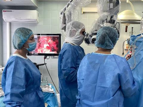 Недавно в отделении нейрохирургии была успешно выполнена сложная операция, в которой новообразование было расположено в труднодоступной области перехода ствола головного мозга в спинной мозг. Операция прошла успешно благодаря комбинации нейронавигационной системы и операционного микроскопа, которые обеспечили качественную визуализацию труднодоступной области и возможность точного манипулирования.