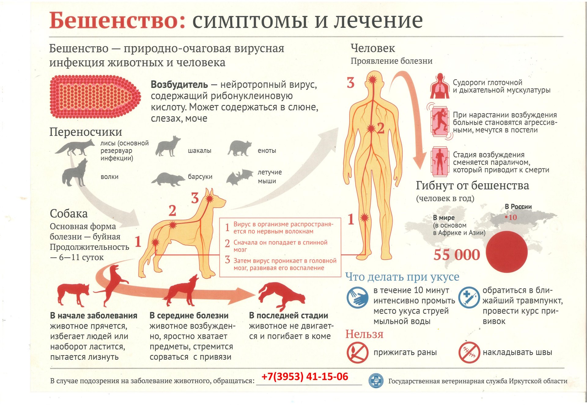 Напомним, что заражение человека наступает при укусе больным животным, а также вследствие оцарапывания, ослюнения свежих ранений кожи или слизистых оболочек.