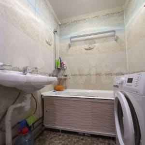 Сан.узел объединен, благодаря чему в нем умещается и раковина и стиральная машина.