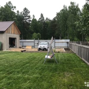 Участок предпоследний по улице, поэтому находится прямо возле леса, вид и воздух просто превосходные. Есть дорожка на небольшое озеро, занимающая примерно 15 мин ходьбы.