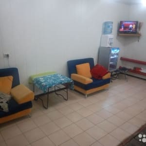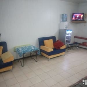 Плитка на полу,стены обшиты панелями,натяжной потолок,хорошее освещение!!! Раковина со сливом на,улицу,кран под автомойку!